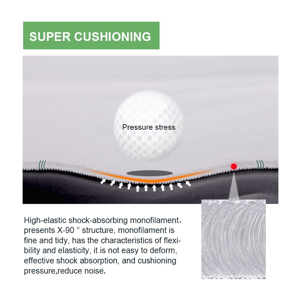 Zero Bounce-Back: Safety is paramount in home golf. The triple-layer structure dissipates kinetic energy instantly, ensuring the ball “drops dead” at the foot of the screen rather than rebounding toward the player.